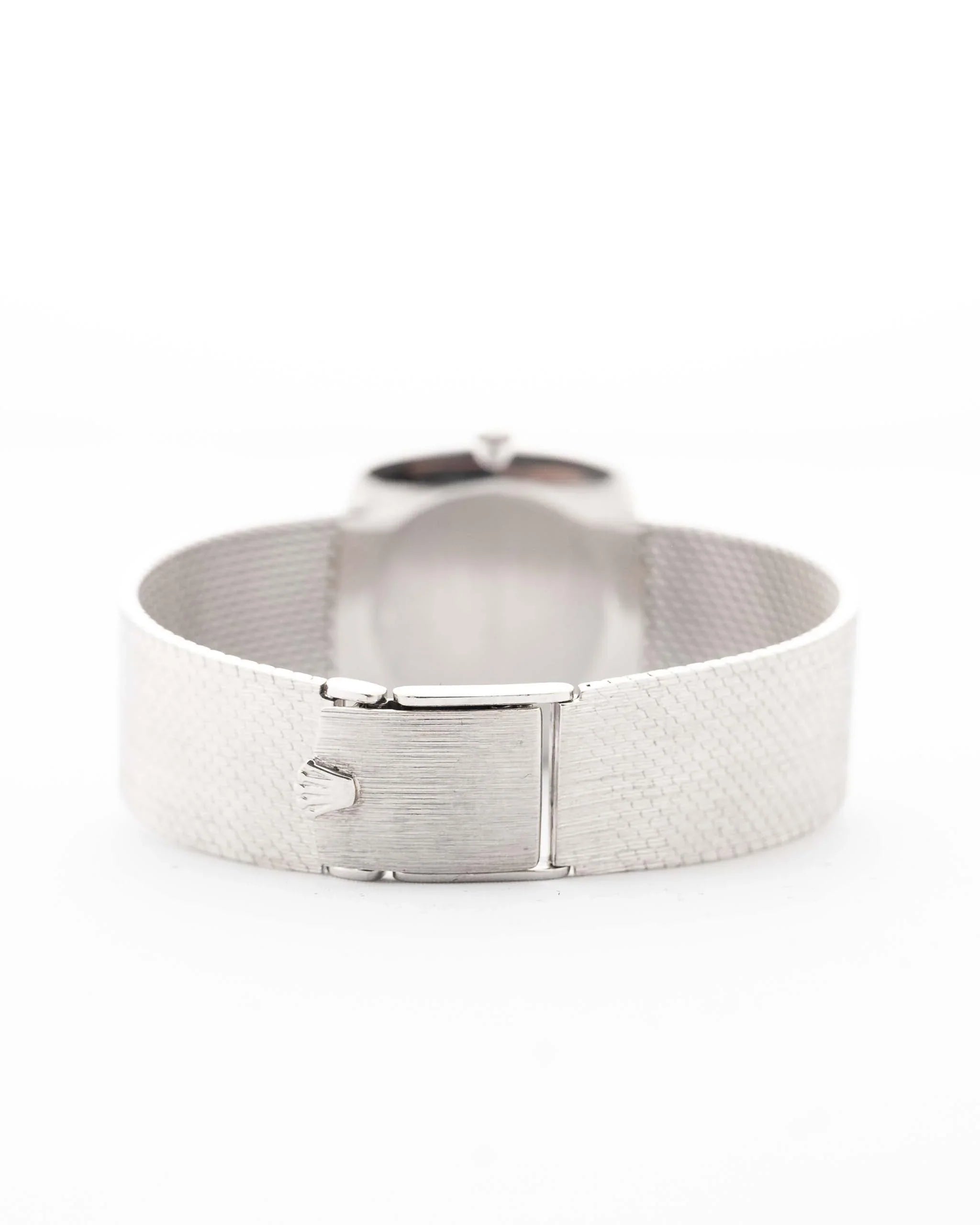 This model comes with silver colored sunburst dial which matches the 18k white gold case and bracelet perfectly. The refined brushed bezel design and Rolex logo crown on the clasp is the icing on the cake.